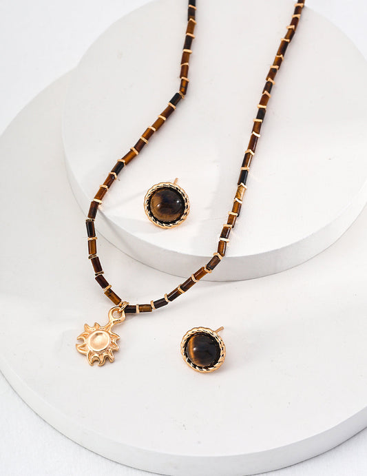 Mascarene - Halskette mit Sonnen-Anhänger aus Tigerauge Stein